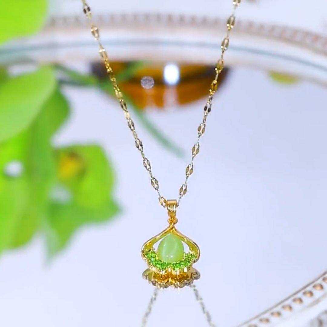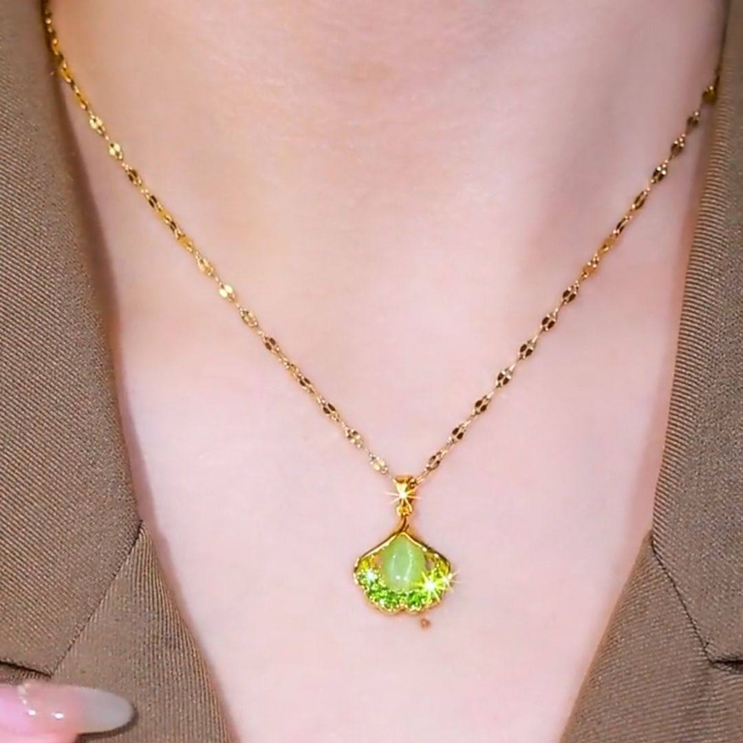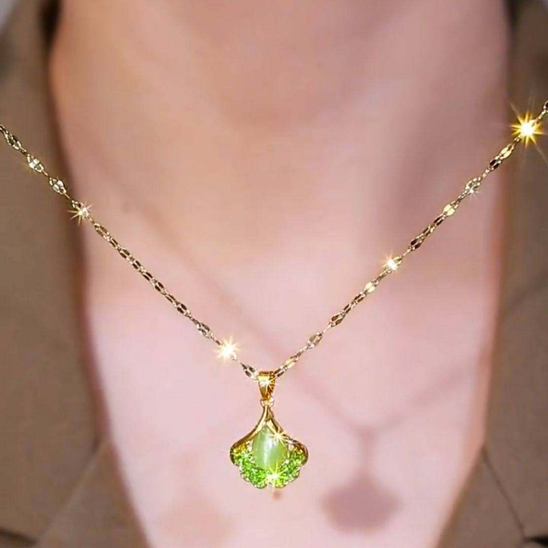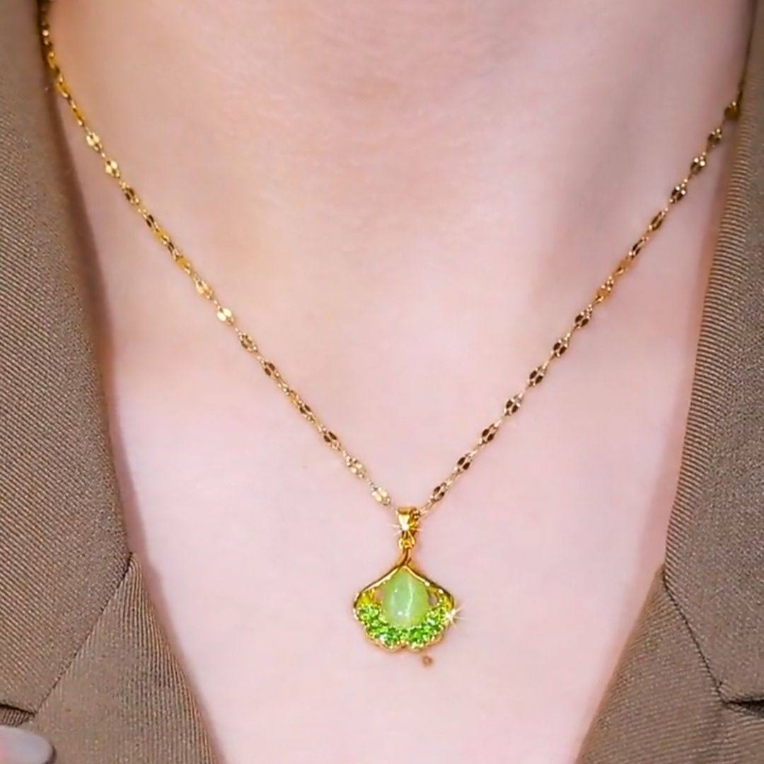 独特猫眼石绿色银杏叶项链女网红爆款轻奢气质百搭小众设计感项链