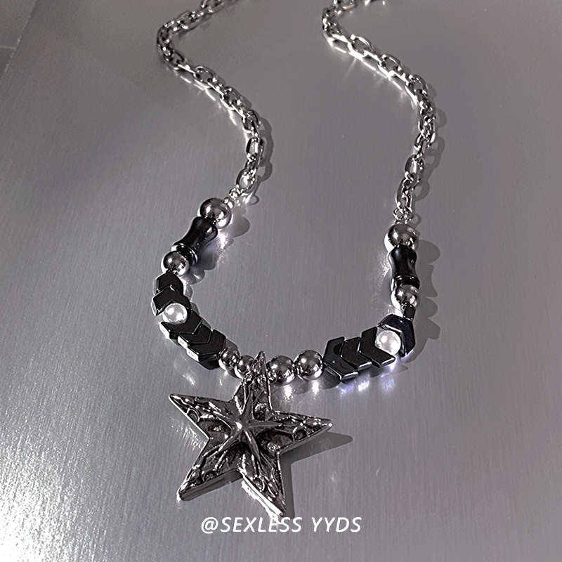 划过星空!yyds重工五角星串珠项链女小众设计朋克风嘻哈男亚文化