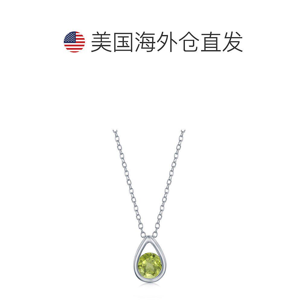 自营 simona纯银梨形项链配圆形“八月诞生石”宝石-橄榄石-绿色