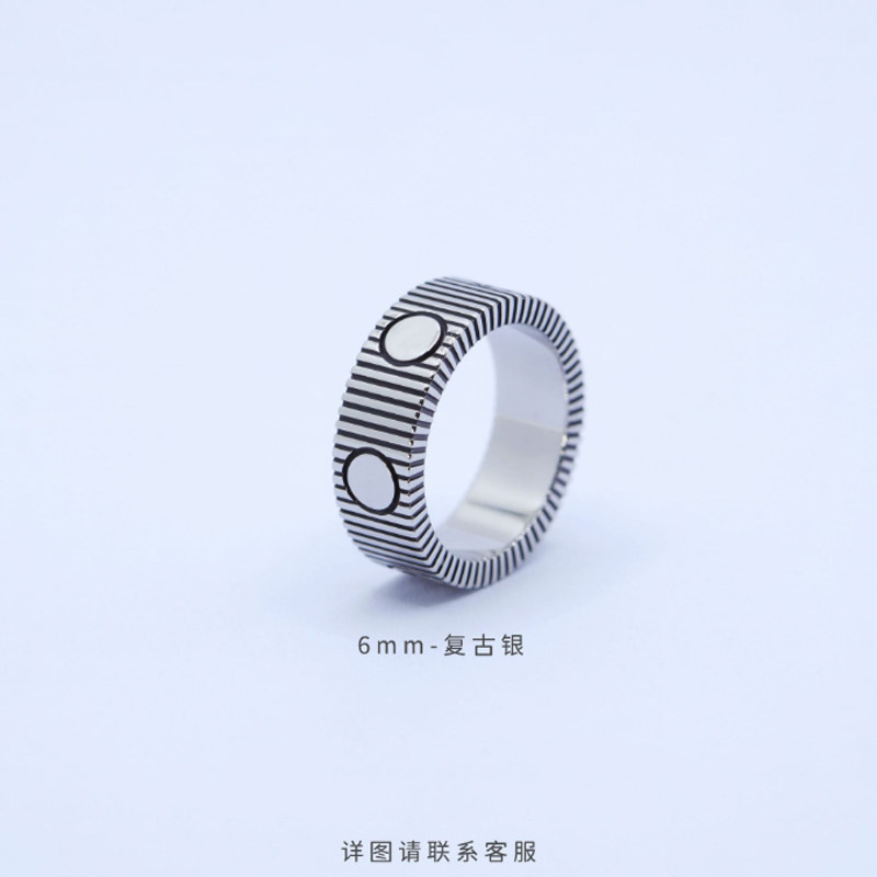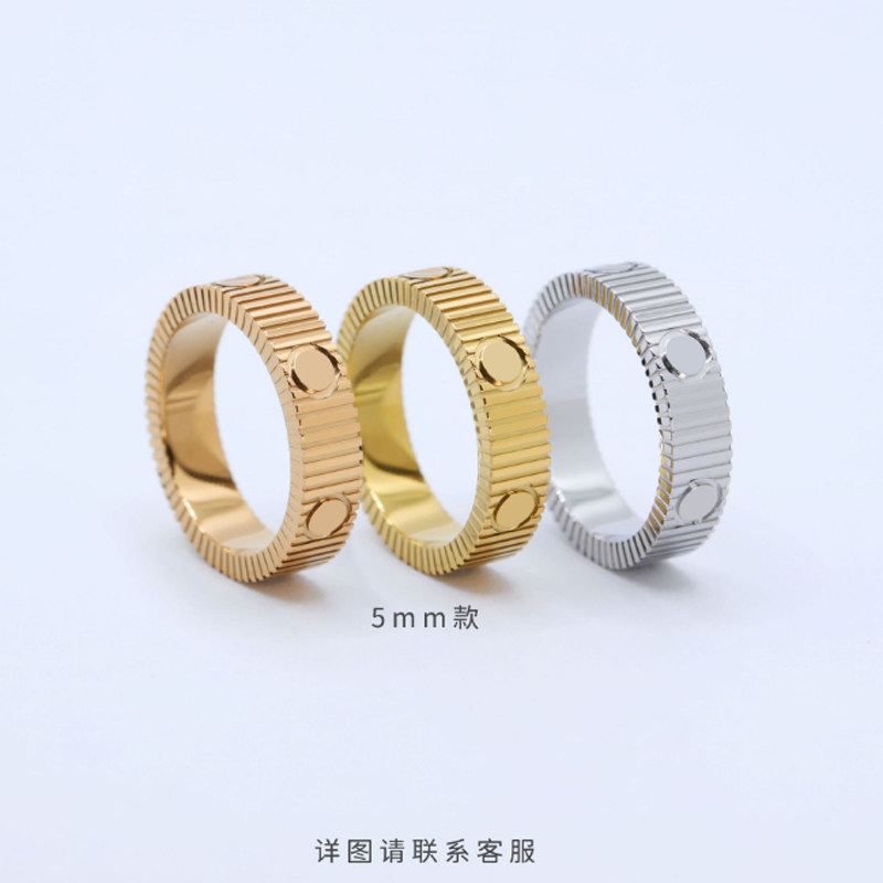 复古精钢戒指男女6mm款竖条纹表带设计时尚百搭指环经典螺钉对戒