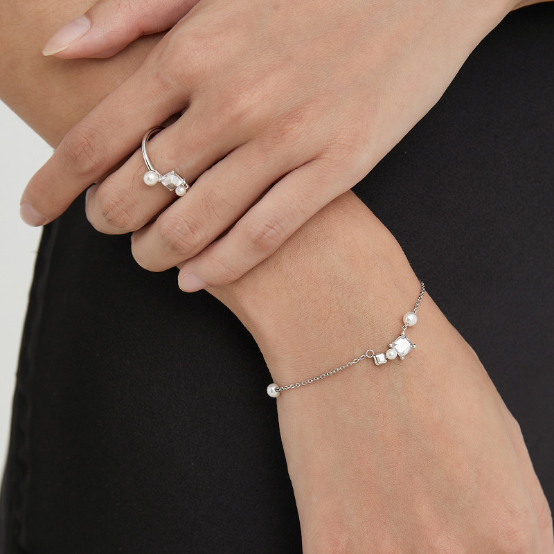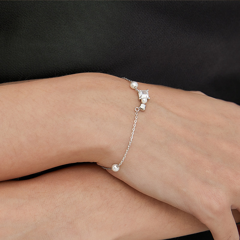 THEYKNOW<TOUCH纯银系列>珍珠弧形手链个性ins原创设计礼物
