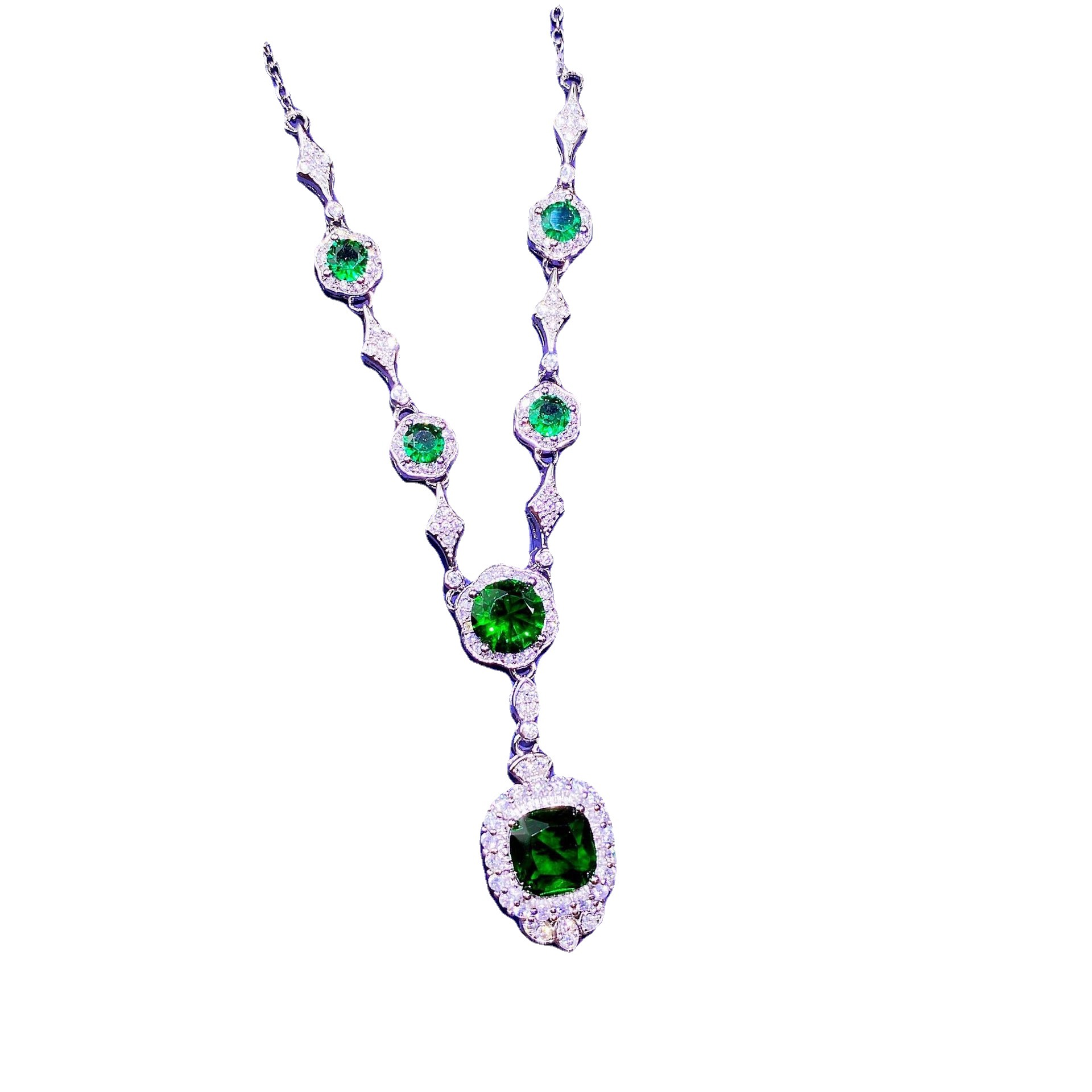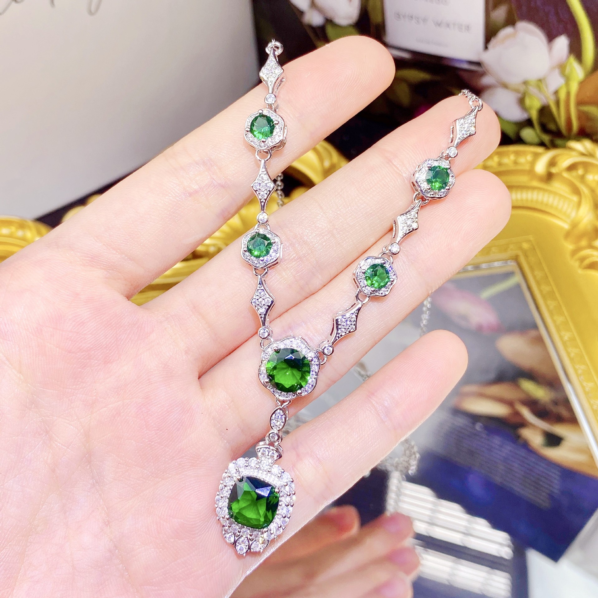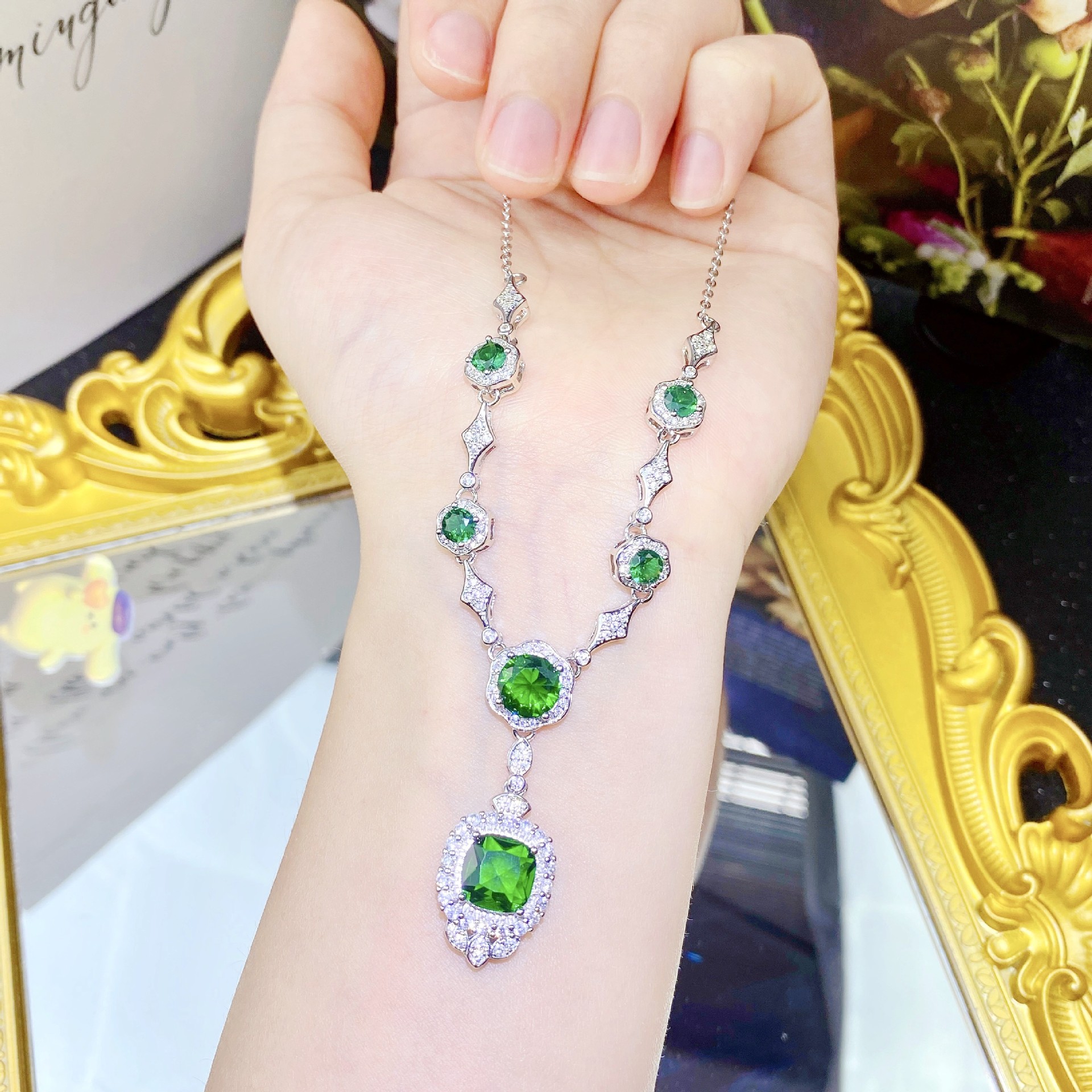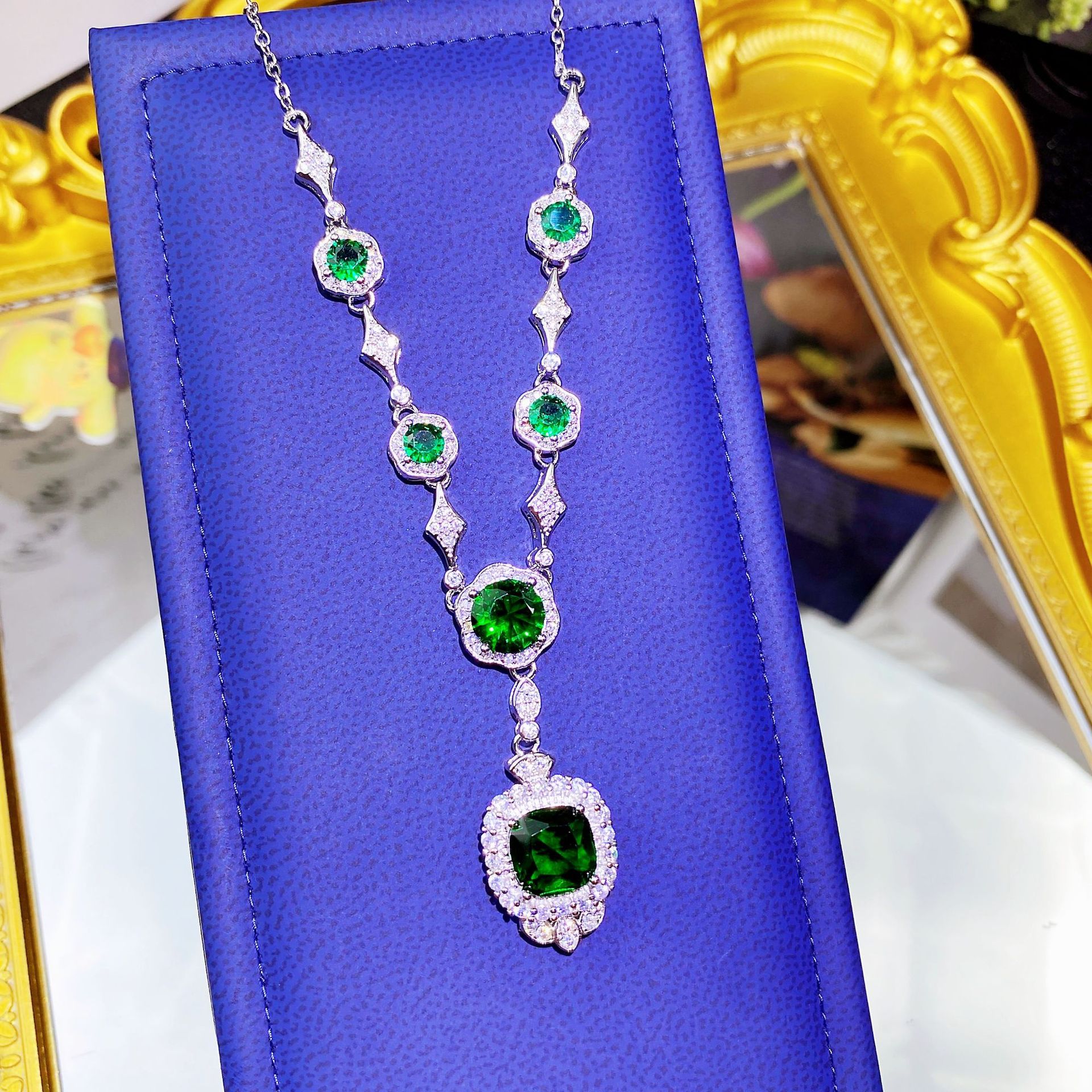复古高定钻石绿色宝石晚装链吊坠重工设计仿天然祖母绿项链女