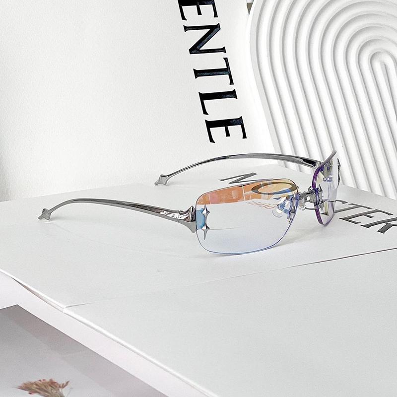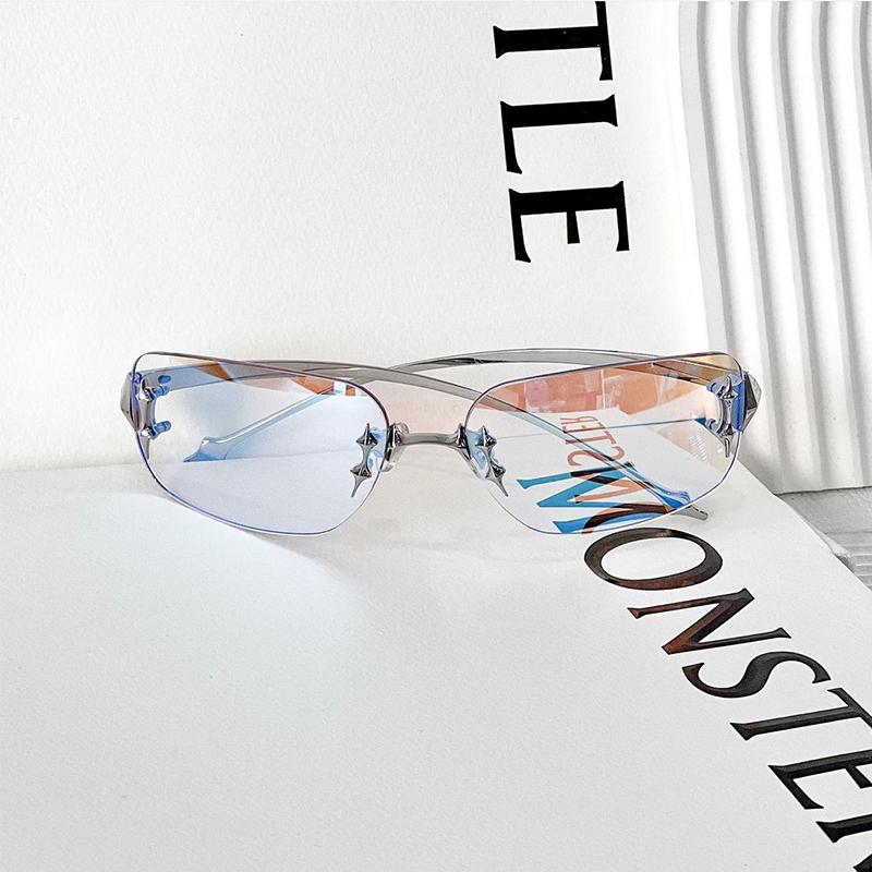 新款韩版复古五角星无框墨镜女Y2K未来感凹造型时髦太阳眼镜男酷