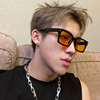 复古方形眼镜男士个性橘黄色透明墨镜潮流韩版防紫外线大脸太阳镜
