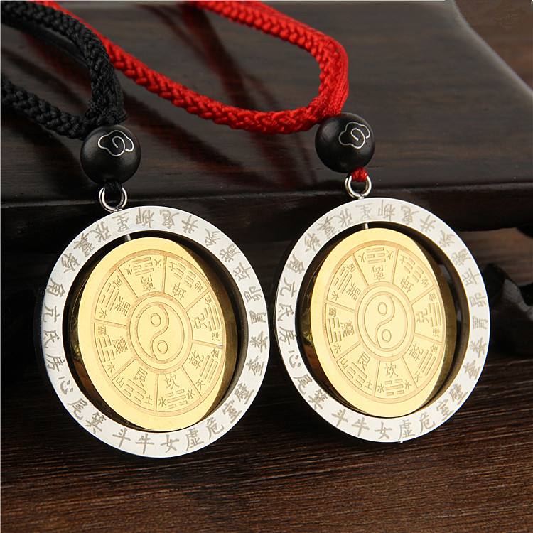 结缘转动阴阳鱼先天八卦吊坠钛钢太极图挂件男女情侣项链饰品平安