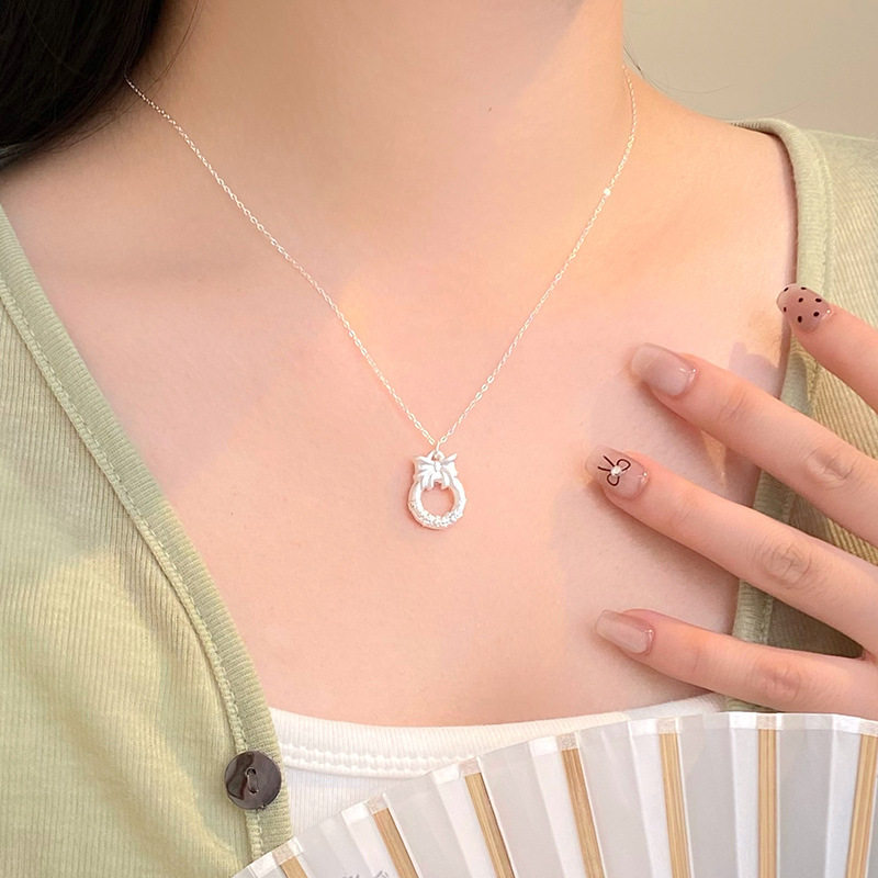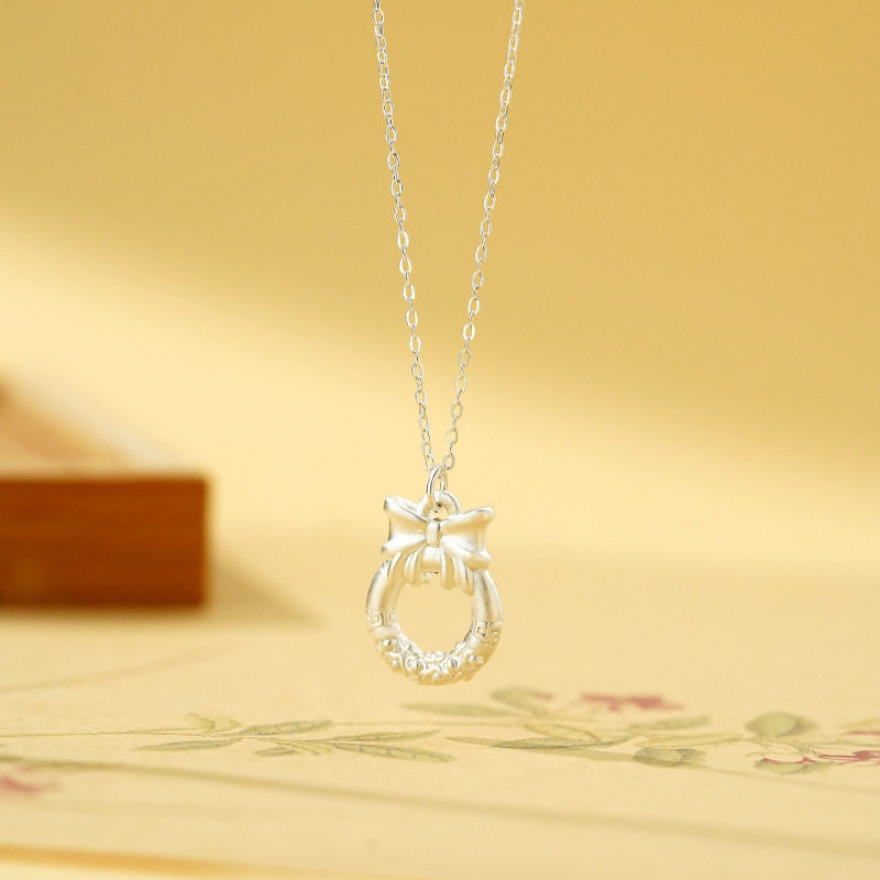 足银999圆环蝴蝶结项链女在逃公主祥云正品纯银锁骨链圆圈ins套链