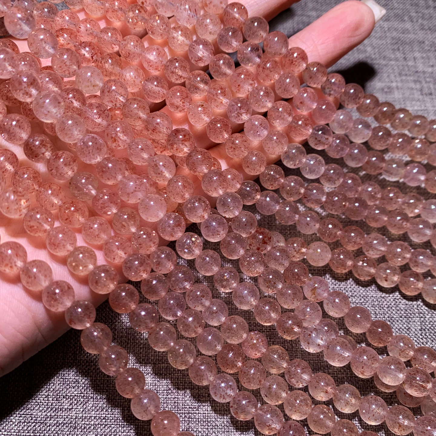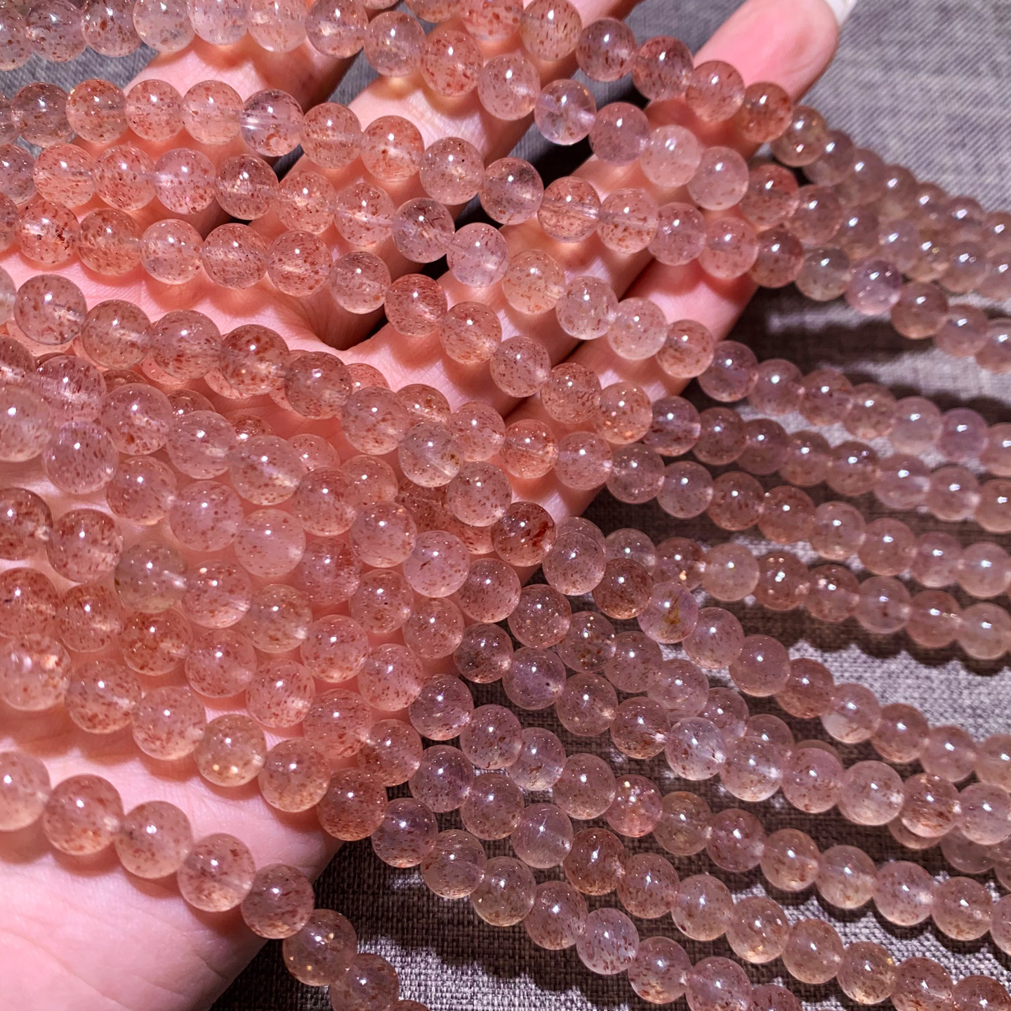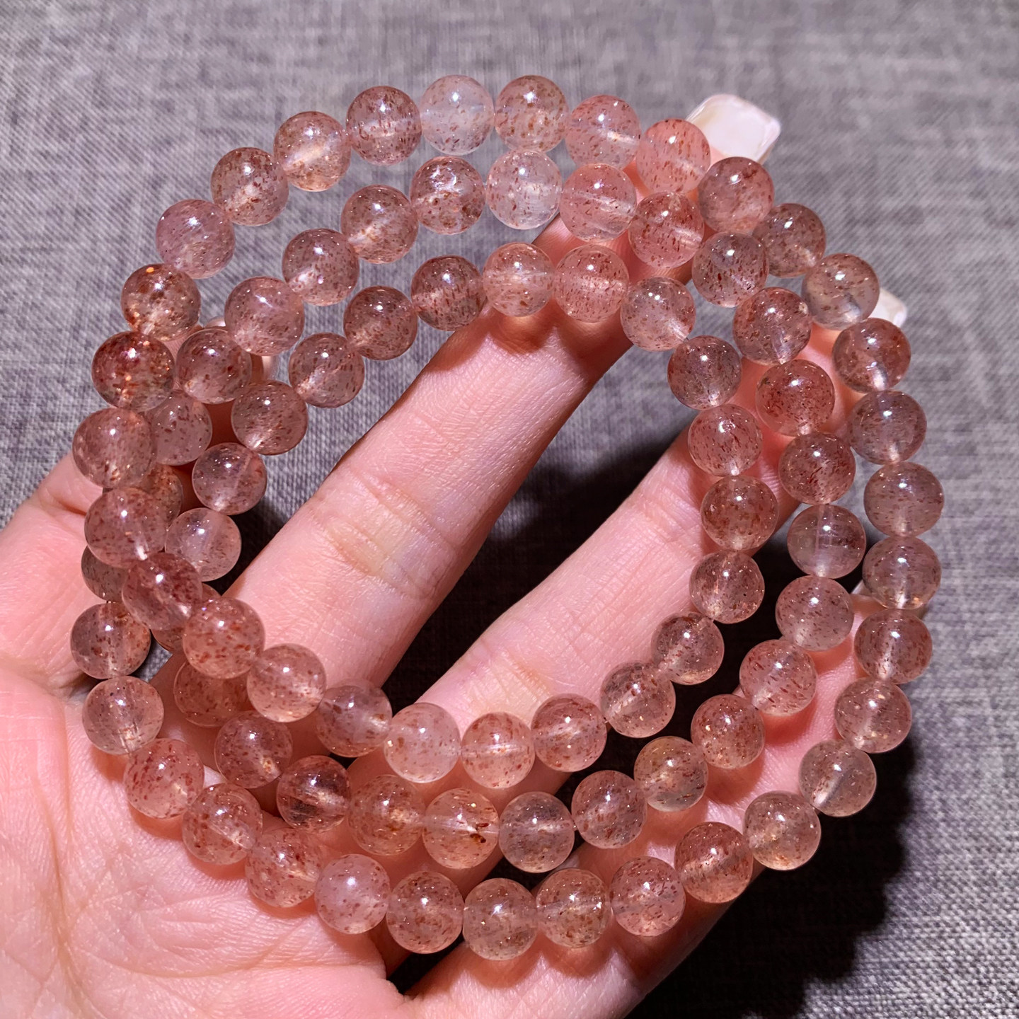 天然橙色草莓晶三圈手链老矿嫩色桃花粉晶水晶手串饰品礼物情侣女