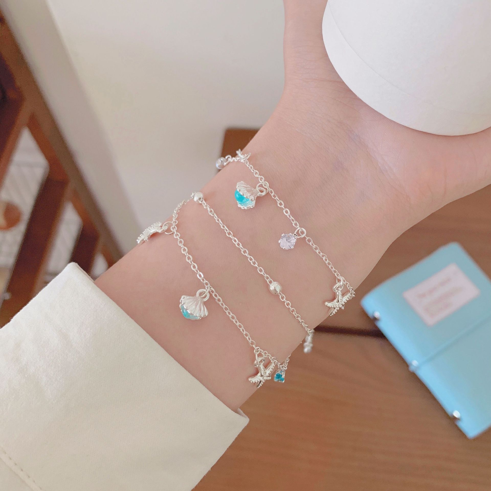 海星珍珠蓝色系铜微镶双层手链女个性时尚叠戴百搭小众高级感
