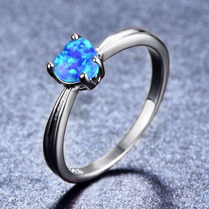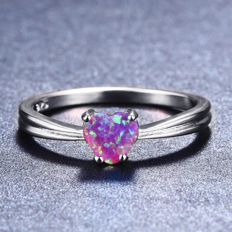 新款跨境欧美韩式风S925白金6mm白紫蓝色澳宝心形简约女式戒指