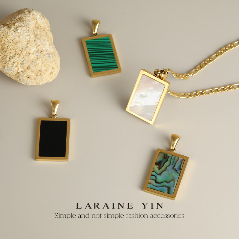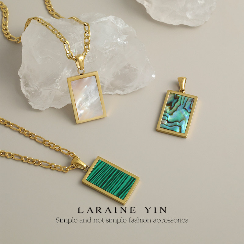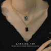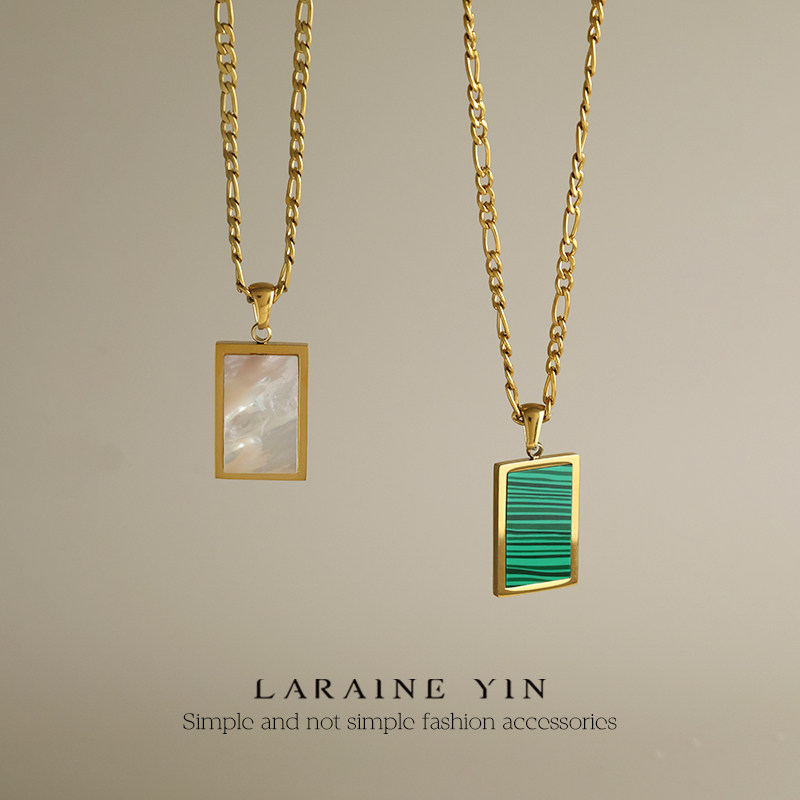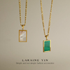 欧美简约设计感长方形白贝项链黑色吊坠女时尚百搭绿色颈链ins