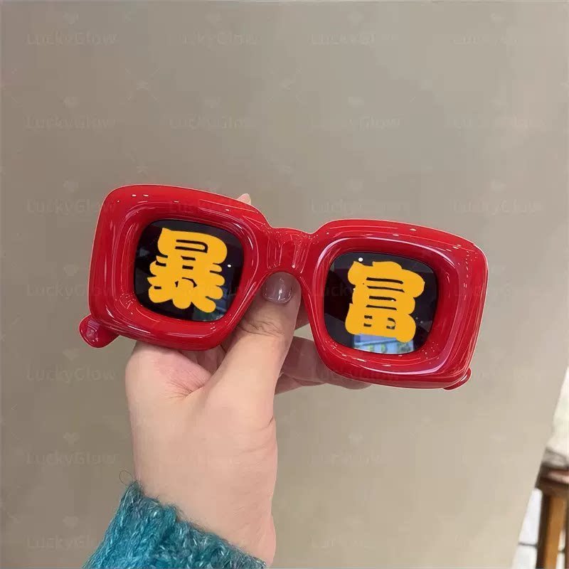新年好运发财暴富红色眼镜拍照道具氛围感装饰品男女墨镜儿童表演