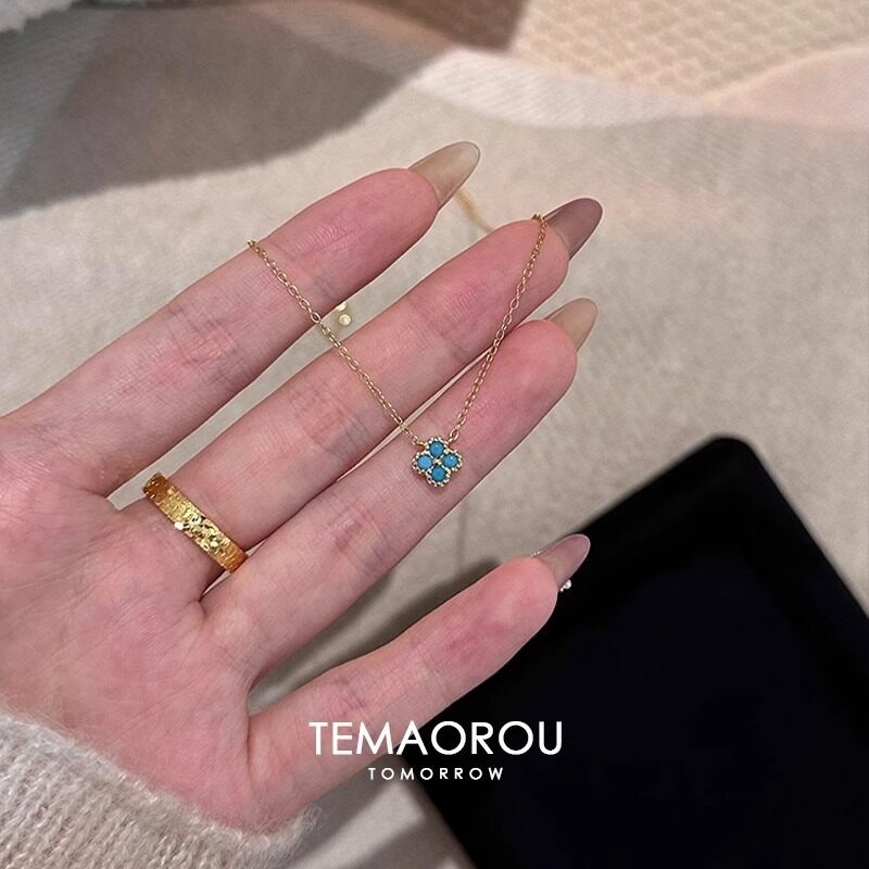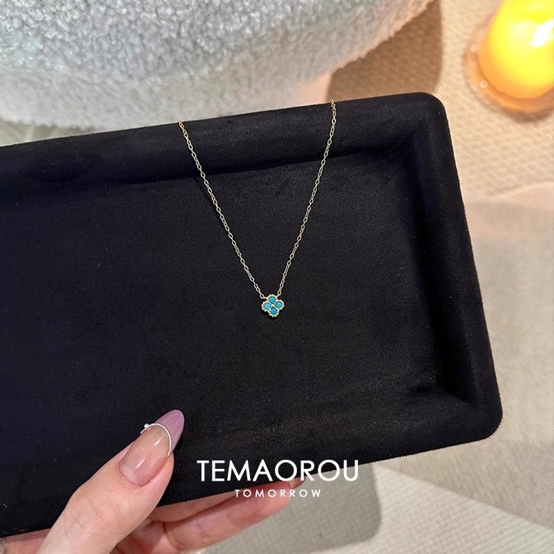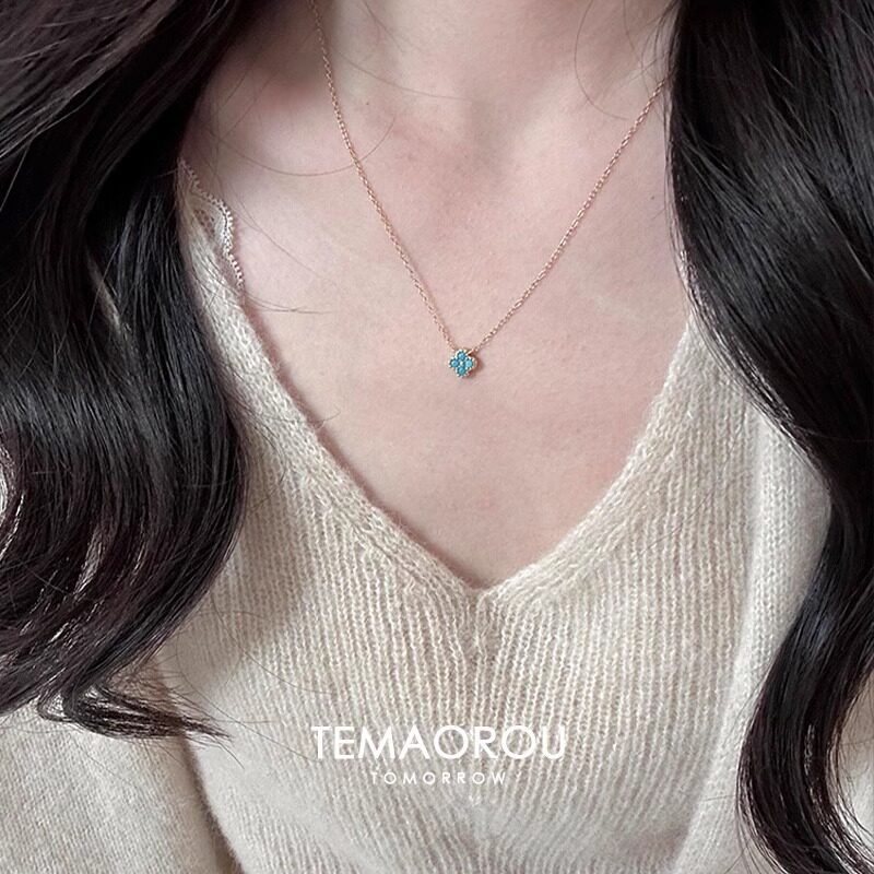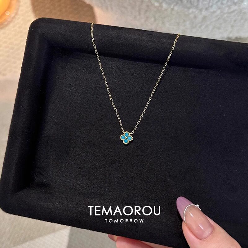 S925纯银绿松石四叶花项链高级感轻奢小众精致2026新款夏季锁骨链