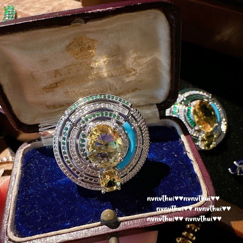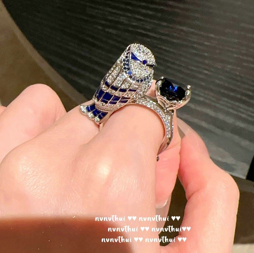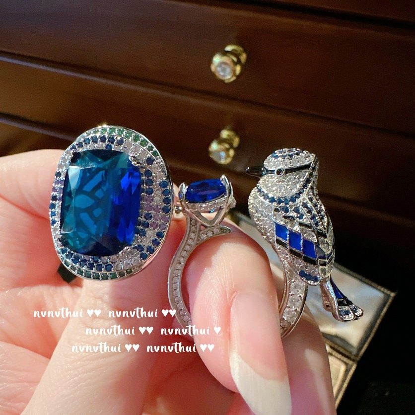巴洛克个性高端鹦鹉蓝宝石轻奢戒指 气质18K金鸽子蛋锆石开口指环