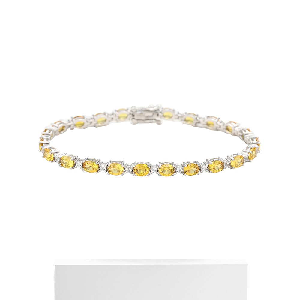 自营 Suzy Levian 纯银椭圆形切割黄色蓝宝石网球手链 - 黄色 美
