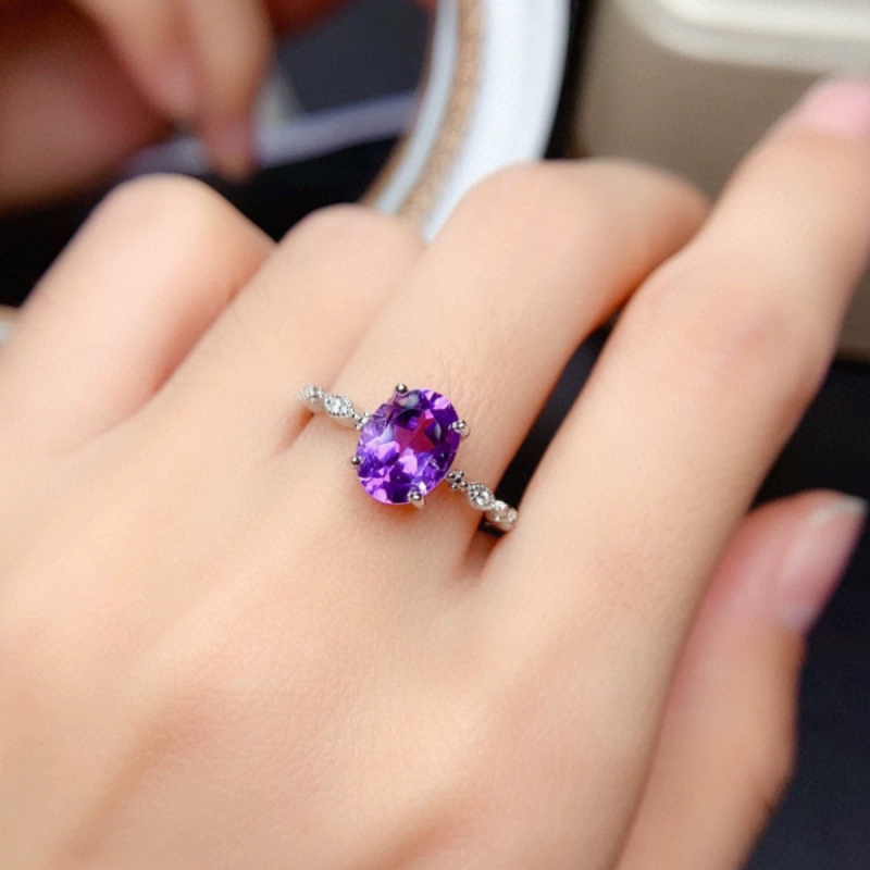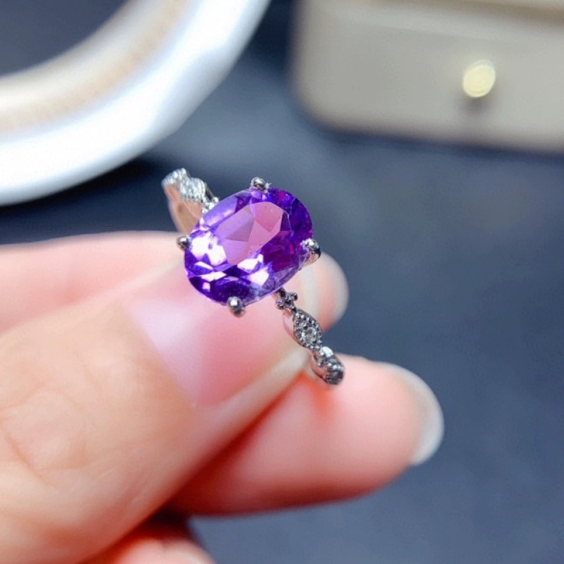 新品新款复古轻奢款小众设计紫色戒指宫廷风花纹开口戒指