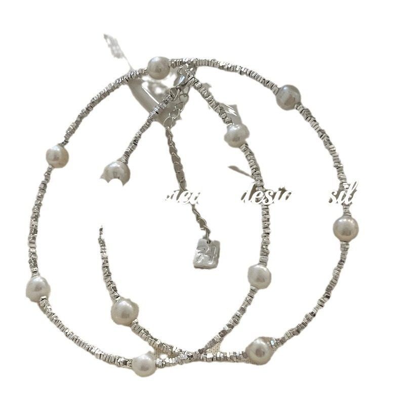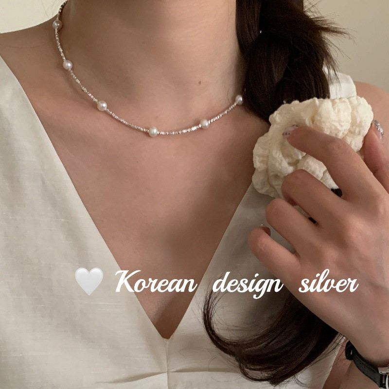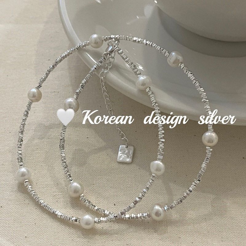 韩国东大门银饰品批发 S925纯银珍珠碎银拼接项链女叠戴百搭Ins风