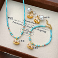 新中式蓝色珐琅拨浪鼓仿绿松石项链女2026年新款轻奢高级感锁骨链
