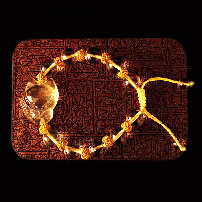 天然黄水晶狐狸手链 手编绳黄水晶狐狸手串 黄水晶大头萌狐手链
