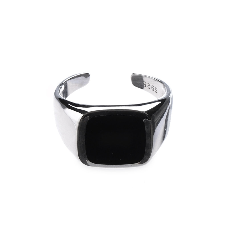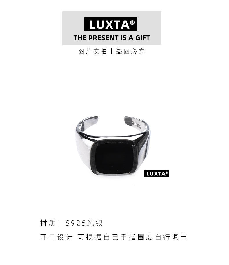 LUXTA 纯银戒指s925银镀金嘻哈个性黑色欧美男女潮简约时尚hiphop