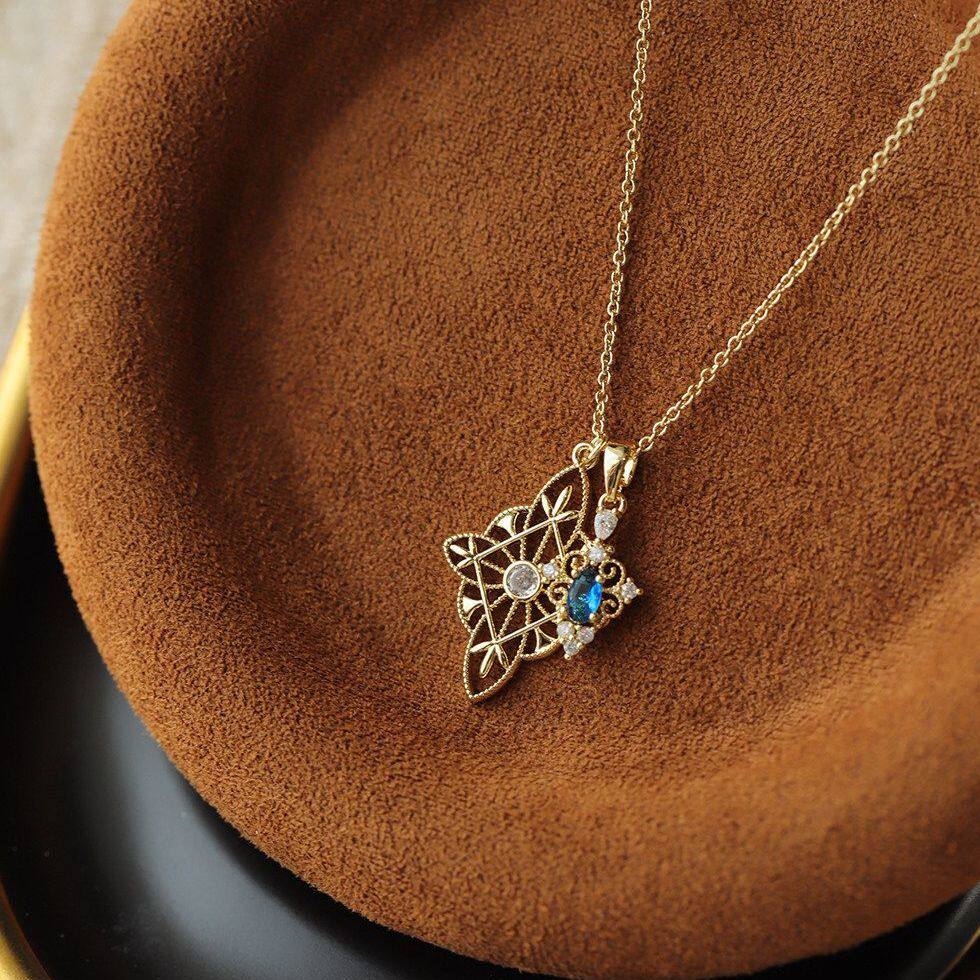 文艺镂空花窗蓝色吊坠项链女2026日系小众轻奢精致极细项链