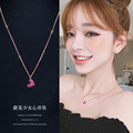 925纯银红色镶钻小樱桃吊坠项链女锁骨链可爱韩版个性ins气质百搭