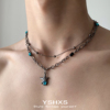 蓝色星星锆石双层叠戴项链女小众设计感时尚锁骨链甜酷辣妹配饰