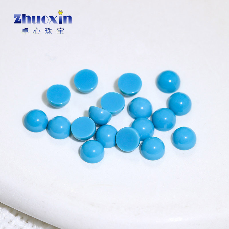 人造蓝松石圆形平底素面裸石戒面钻 光面文玩饰品配石可蜡镶纳米