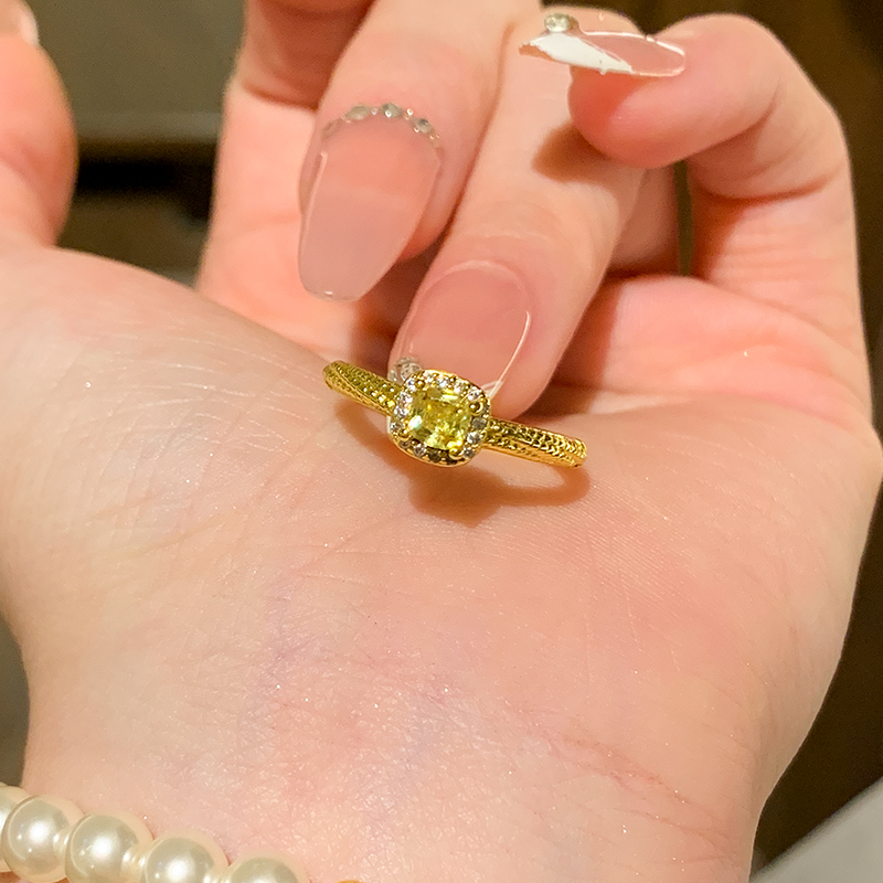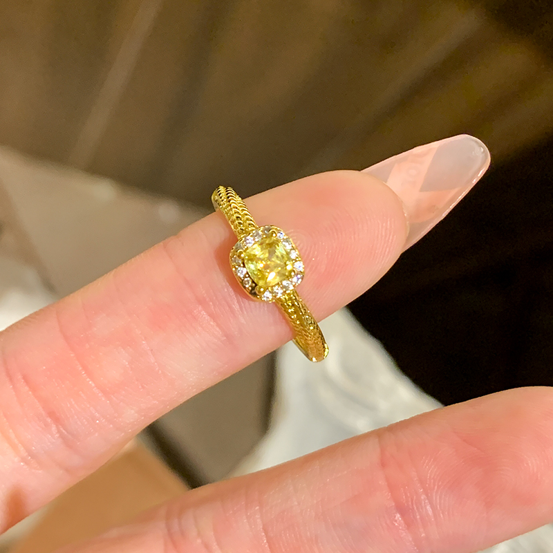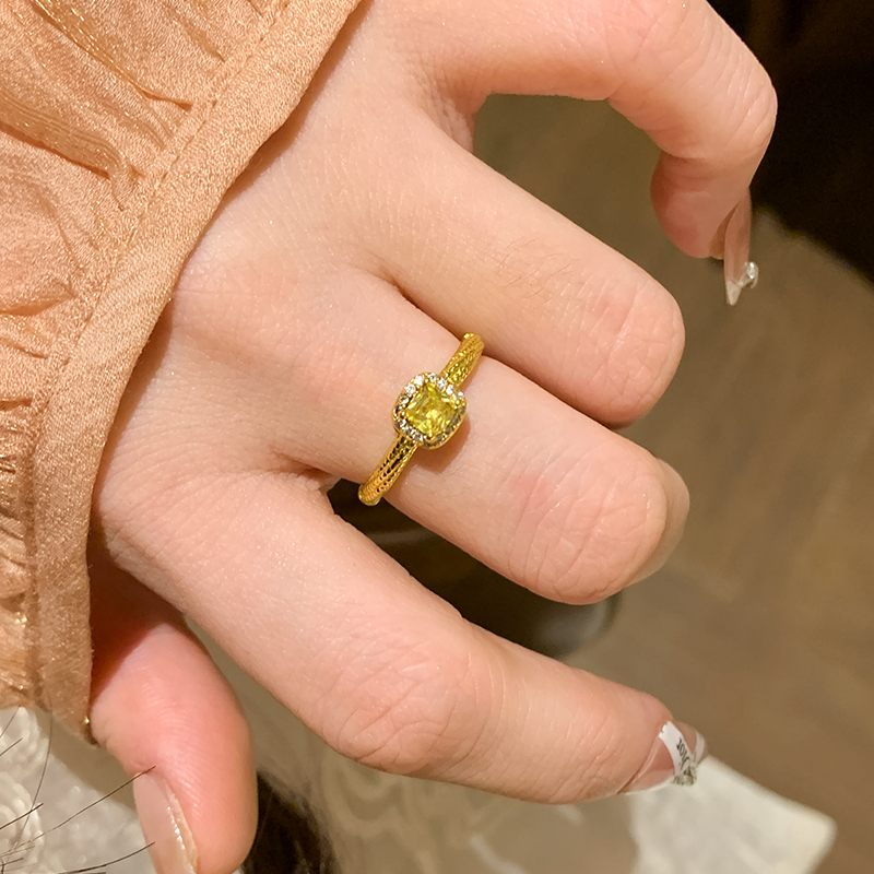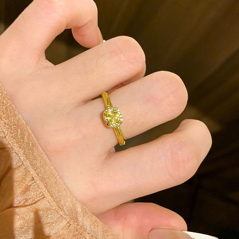黄钻方糖戒指女小众设计开口尾戒新款素圈戒指女轻奢高级感食指环