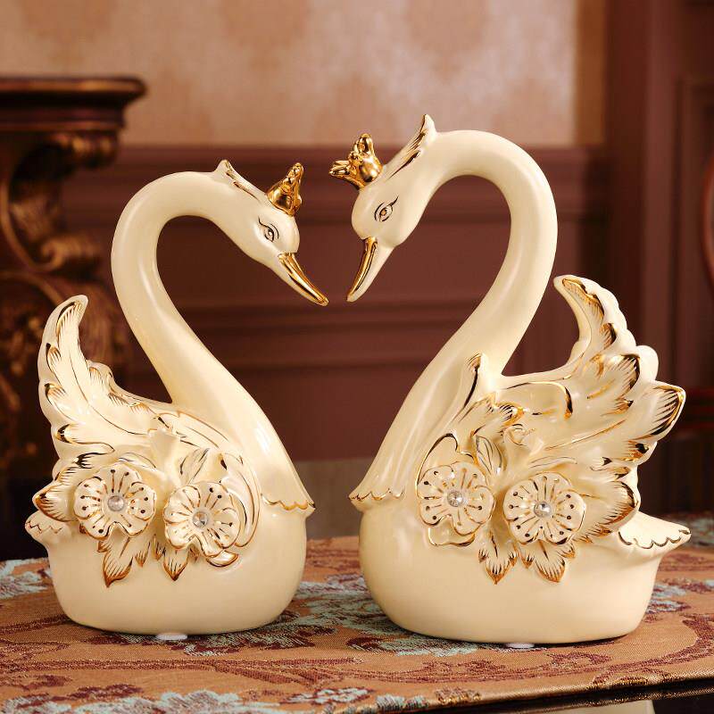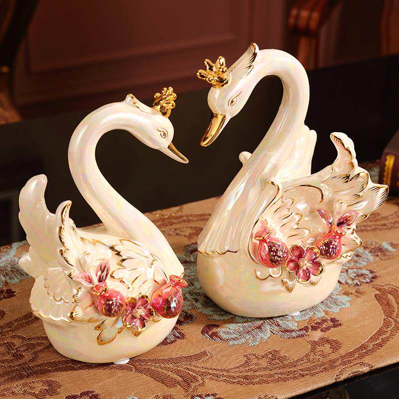 欧式陶瓷天鹅创意家居软装酒柜摆设客厅电视柜装饰柜摆件结婚礼物