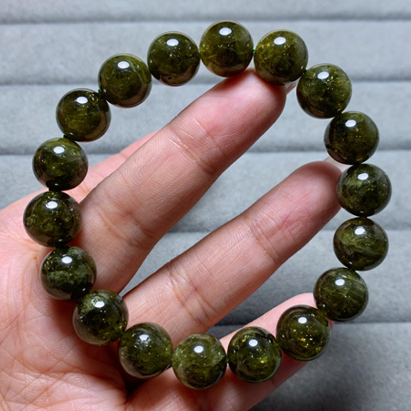 天然沙弗莱石榴石单圈手链水晶一物一图莎弗莱石翠绿色手串送女生