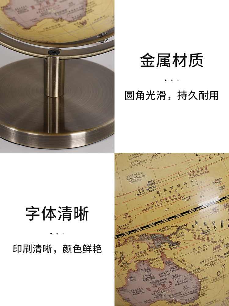 当前位置:首页>商品详情>地球仪摆件复古书房桌面办公室酒柜装饰品世界地图家居客厅柜摆设