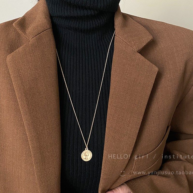 复古人像金币毛衣链2024新款爆款秋冬项链女轻奢小众长款毛衣配饰