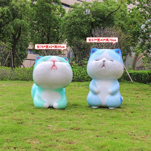 室内外招财猫雕塑花园庭院摆件卡通可爱猫咪玻璃钢美陈装饰品摆件