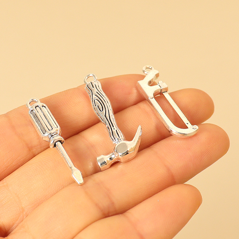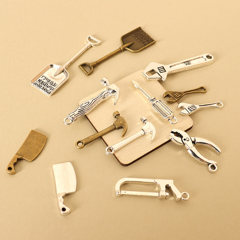 仿真复古菜刀扳手锤锯子螺丝刀合金银色现代工具迷你微缩模型摆件