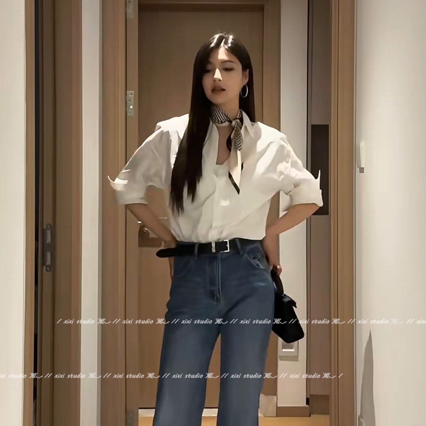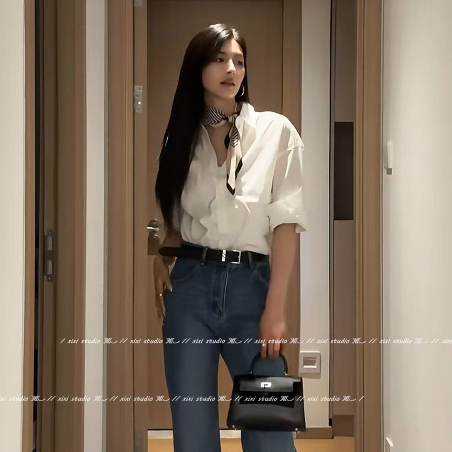 法式黑白条纹长条丝巾颈带系脖早春穿搭精致项链搭配衬衫颈链新品