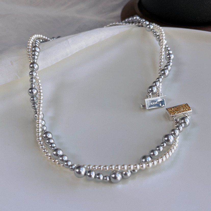 925真多麻色满天星混色白色施家缠绕珍珠套装小众项链手链