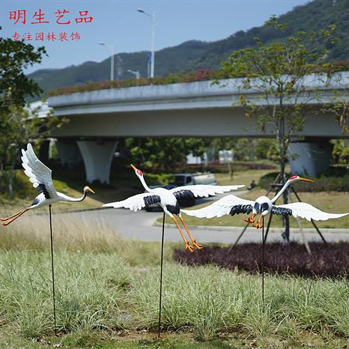 户外飞仙鹤摆件玻璃钢仿真动物雕塑模型园林庭院水池鸟类草坪装饰