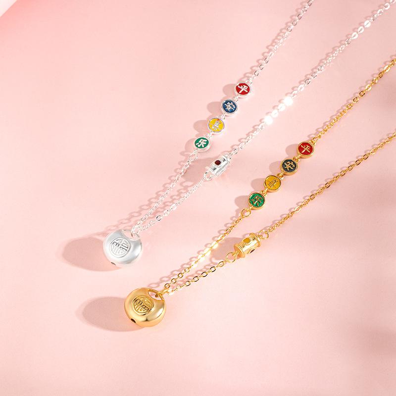 s925纯银新中式小胖福锁项链女平安喜乐锁骨链轻奢风高级感银饰品