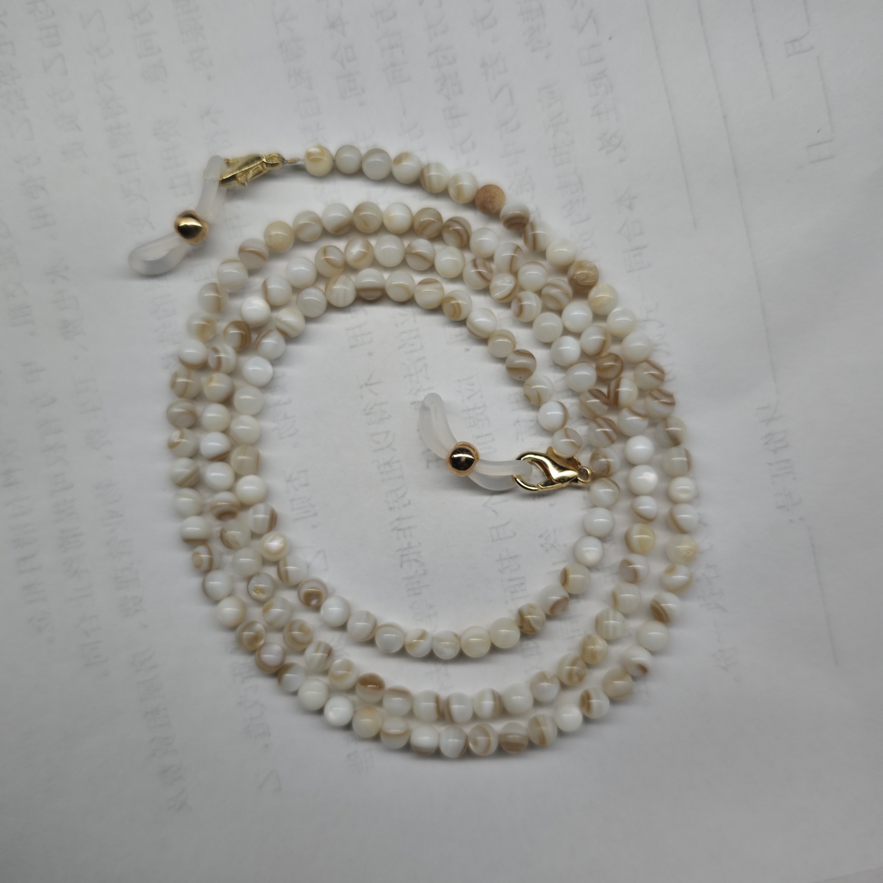 天然贝珠眼镜链手工白色眼镜绳子防滑挂脖眼镜口罩挂绳挂链