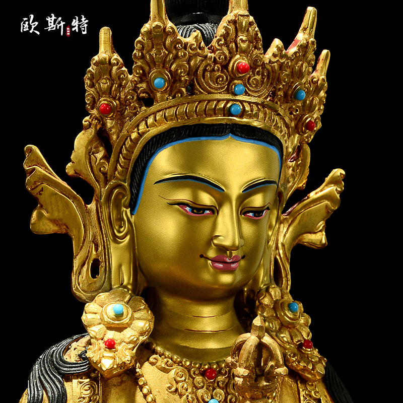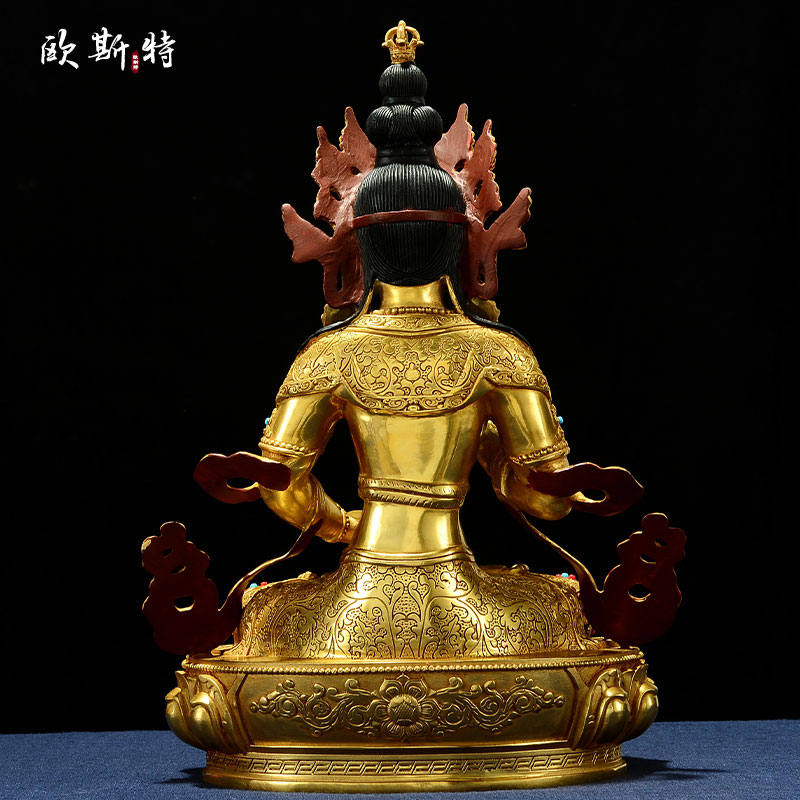 欧斯特全鎏金《金刚萨埵》精工铜雕花《金刚萨垛》桌面铜像摆件