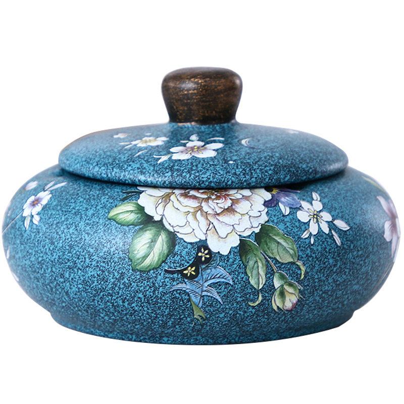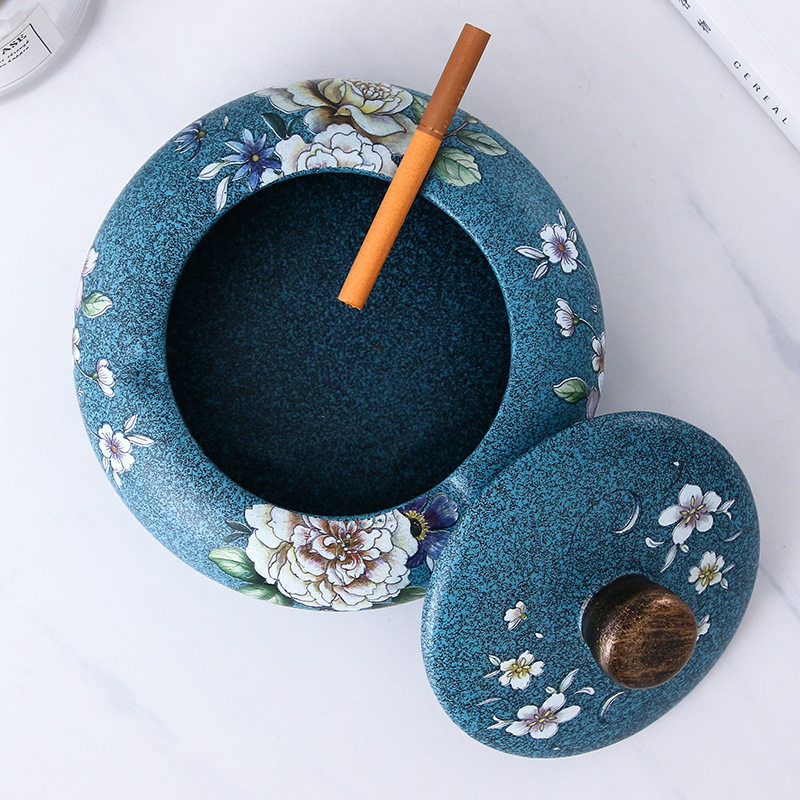 中式轻奢蓝色工艺彩绘陶瓷烟灰缸家用客厅茶几桌面摆件家居装饰品