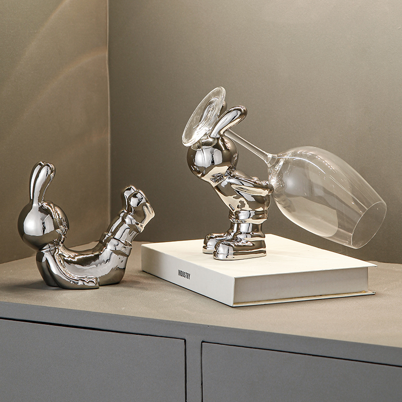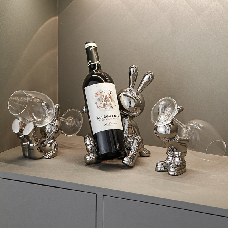 创意兔子红酒杯架摆件客厅电视柜轻奢装饰品酒柜餐柜酒托托置物架