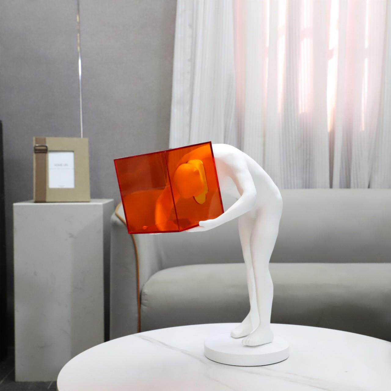 现代简约亚克力橙色囚笼人物雕塑树脂摆件客厅玄关酒店家居装饰品