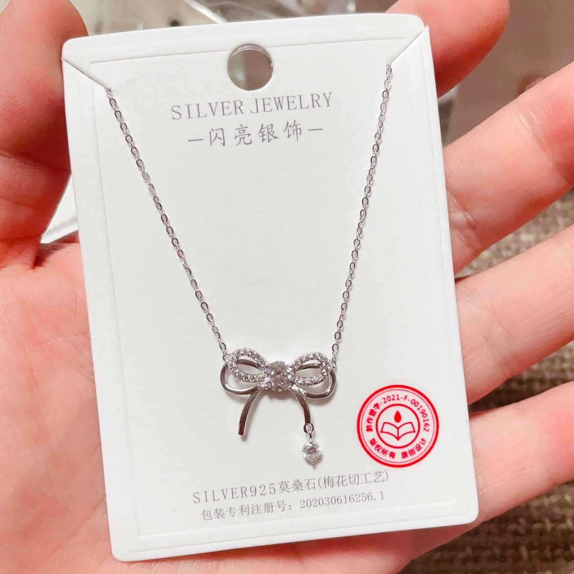 闪亮银饰通体S925纯银微镶白色莫桑钻时尚锁骨项链女百搭潮55