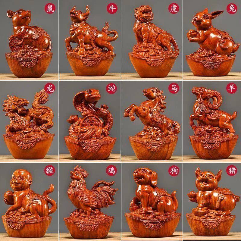 黑檀木实木雕十二生肖摆件鸡摆件客厅家居招财新款12生肖摆件全套