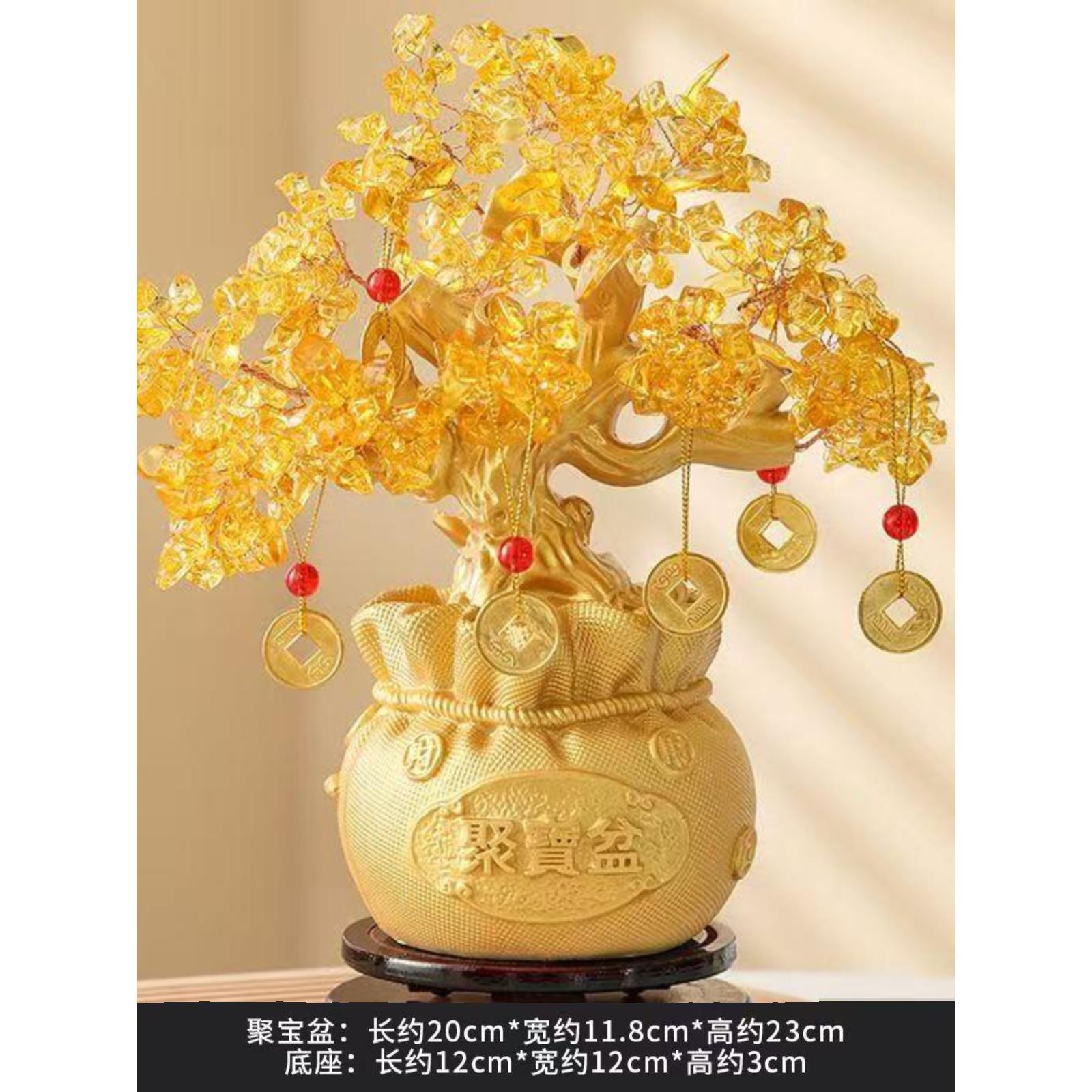 黄水晶摇钱树摆件招财开业送礼家居客厅酒柜收银台装饰创意发财树