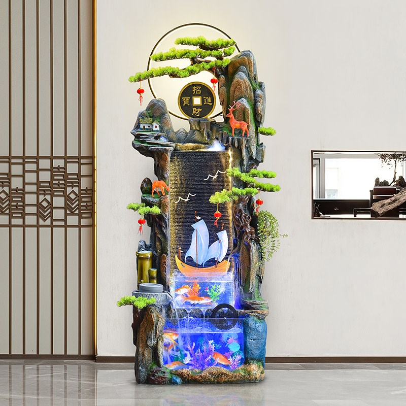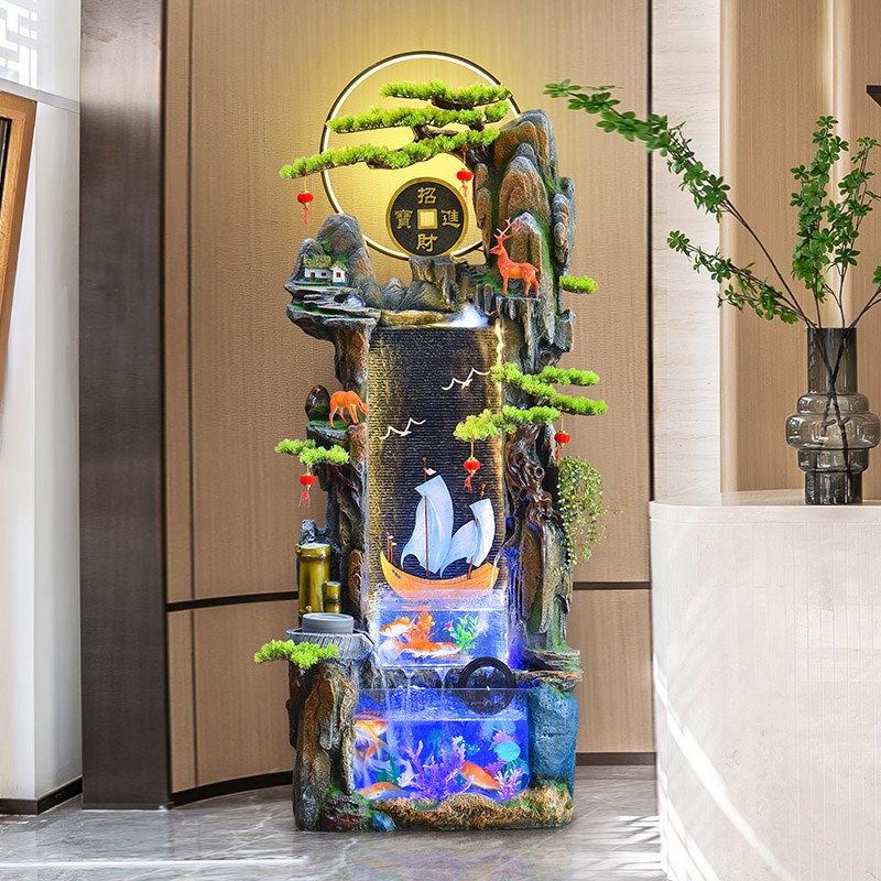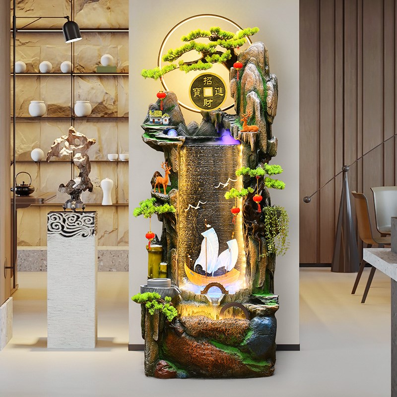 新中式招财假山流水喷泉循环水室内客厅鱼缸落地玄关装饰景观摆件