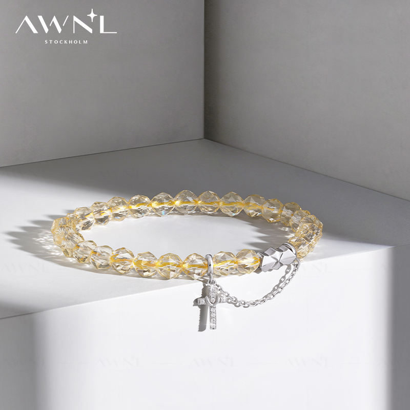 AWNL黄水晶守护十字架手链女款小众礼物送女友五行手串