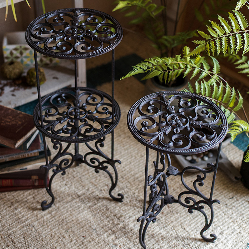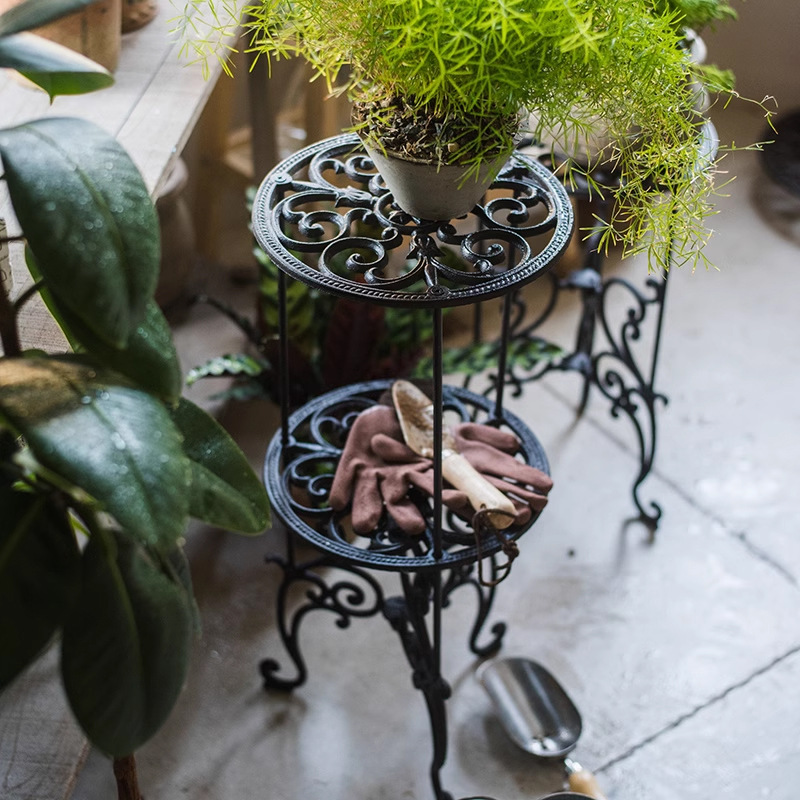 花盆托架铁艺单双层几何花架花盆置物架简约底座托盘阳台落地支架