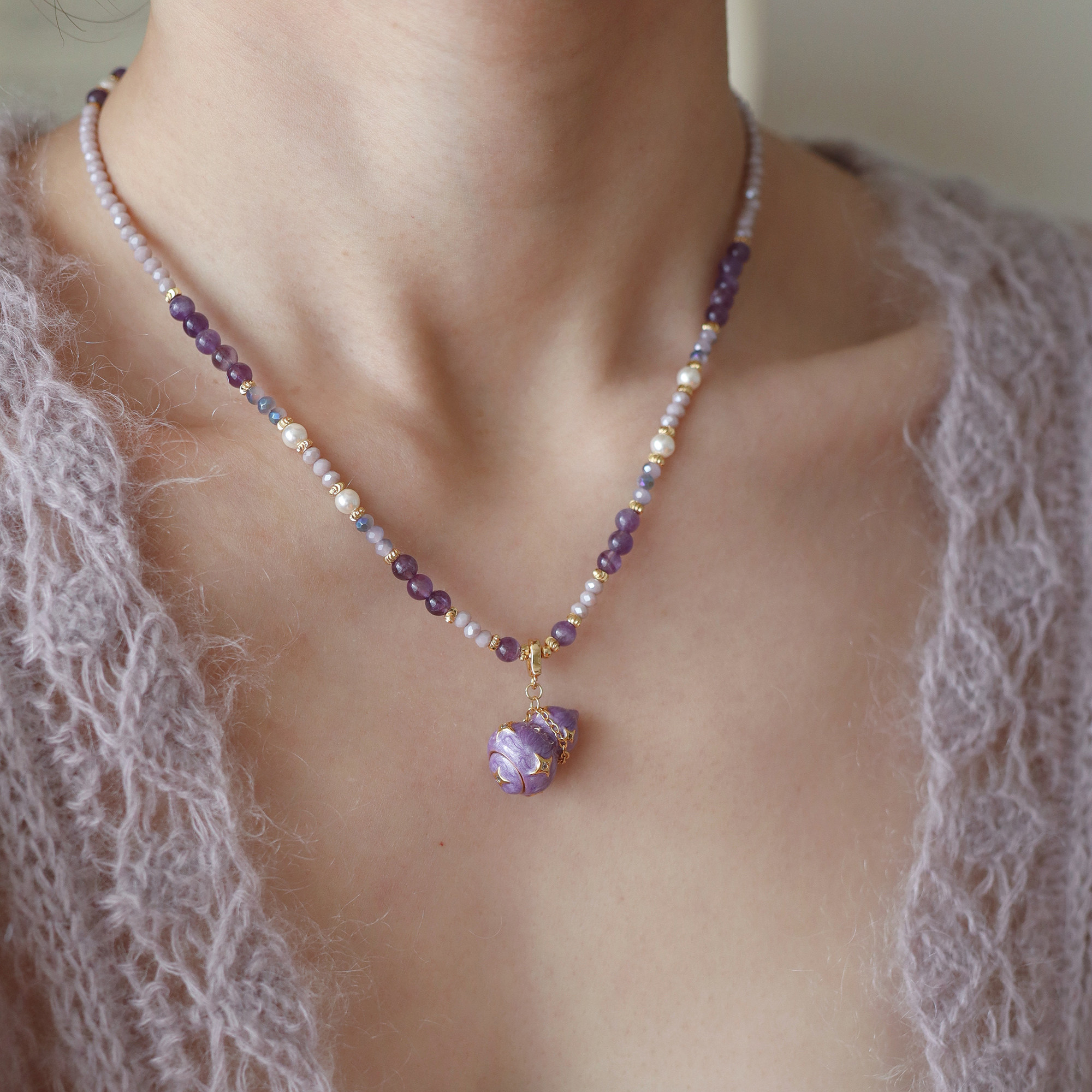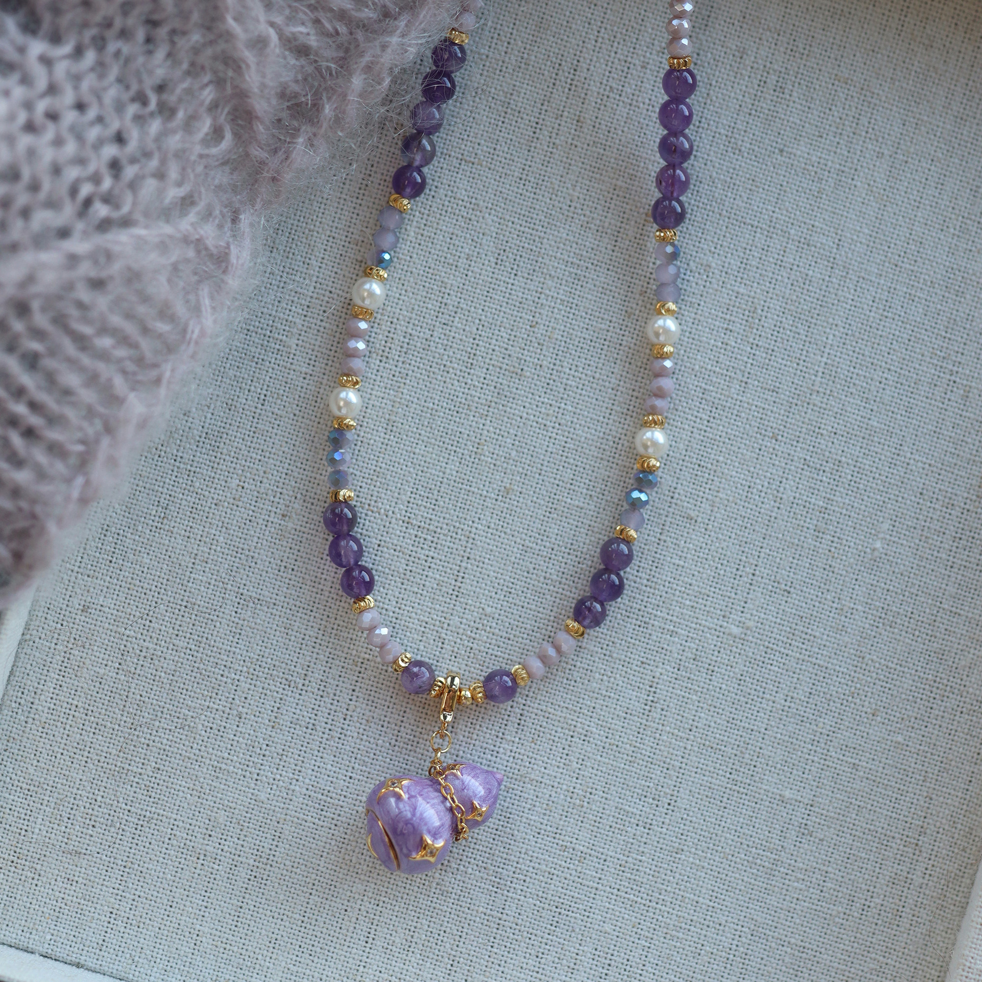 《紫馧》新中式珐琅紫色葫芦珍珠项链小众高级感颈链毛衣链